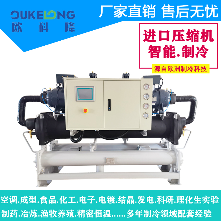 歐科隆制冷集團的中央空調全部精選原裝進口名牌半封閉螺桿式和半密閉往復式壓縮機。雙螺桿5:6齒數(shù)比及先進的線性設計,低碳節(jié)能環(huán)保;性能好、噪音低。根據客戶需要和冷噸位大小,采用單機或多機組合。壓縮機可依負載變化,自動交替運轉,平衡各壓縮機的運行時數(shù),大大延長了冷水機組的使用期限,無故障運行可達45000小時以上。